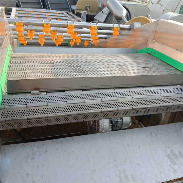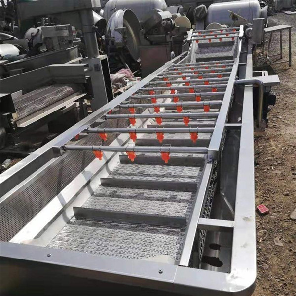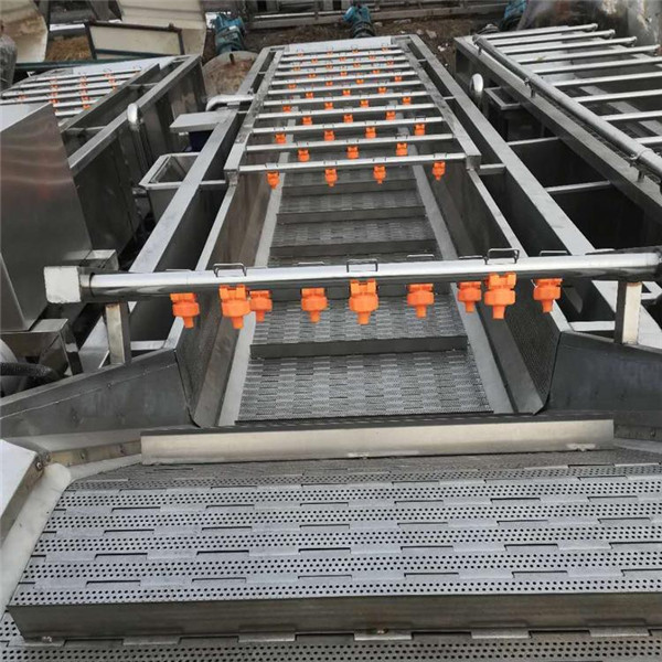 设备输送带电机可实现变速调节机能,清洗后的蔬菜由网链输送,自动送入,自动卸出,并根据生产需调节输送机速度;该设备配有喷雾设备,清洗完成后运送到下一工序。在此过程中,喷雾产品以减小二次污染。水果和蔬菜清洗机普遍用于水果,青菜,白菜,芹菜,高丽菜,菠菜,甘兰,橄榄,细香葱,绿色红辣椒,蕃茄,荷兰豆,青刀豆等马铃薯,根,球,块状材料,切成茎叶茎杆物